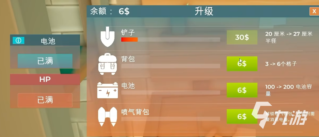 一開始挖到的材料基本上都是石頭,這個物品賣出的價格不高,玩家們第一次升級建議給背包升級,因為我們的初始背包只有3格,這對于前期來說實在是太少了,所以優(yōu)先提升背包的容量。