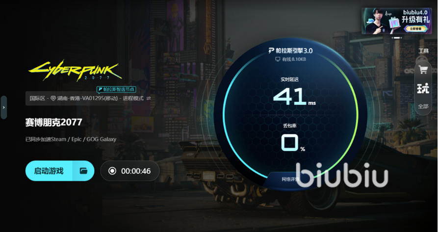 這時,一款高效的網(wǎng)絡(luò)加速器能夠成為玩家的強力助攻。biubiu加速器便是其中表現(xiàn)突出的代表。它不僅適用于多人在線游戲,對于像《賽博朋克2077》這類需要穩(wěn)定平臺通信的單人游戲同樣適用。biubiu通過全球部署的智能加速節(jié)點和高速通道技術(shù),優(yōu)化玩家設(shè)備與平臺服務(wù)器之間的連接,有效降低延遲和丟包率。其穩(wěn)定的數(shù)據(jù)傳輸機制可以避免在云存檔、成就驗證等關(guān)鍵節(jié)點出現(xiàn)連接卡頓,從而間接減少由于資源加載延遲導(dǎo)致的掉幀問題。特別是在高峰時段或網(wǎng)絡(luò)本身不穩(wěn)定的用戶場景下,biubiu的表現(xiàn)尤為出色。