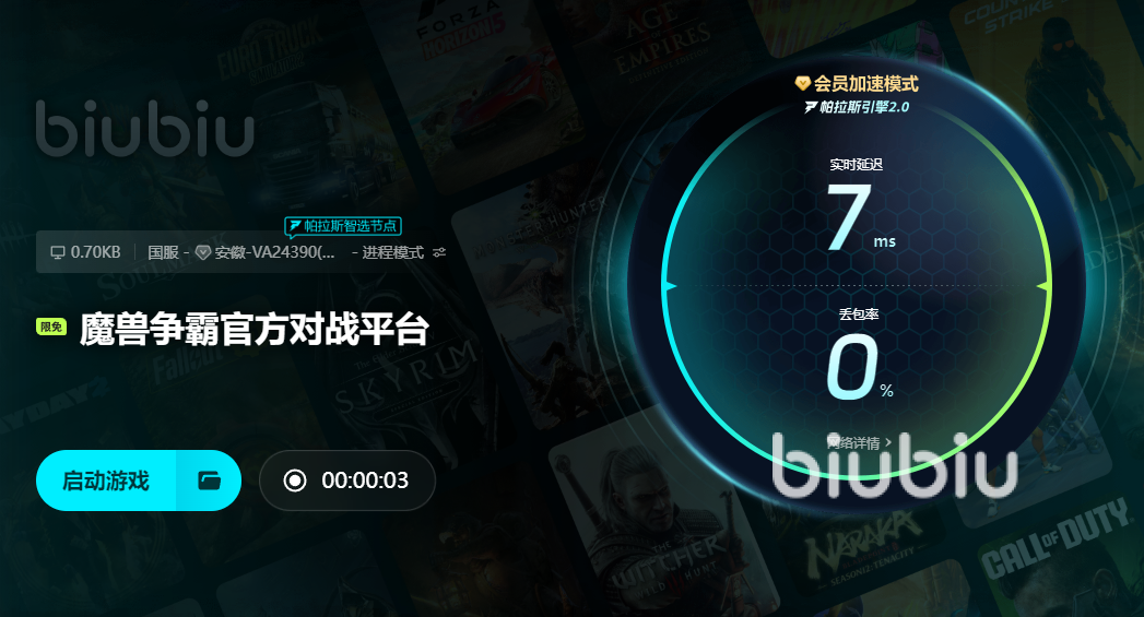 biubiu加速器不僅具備強大的網(wǎng)絡(luò)加速功能,操作簡便,適合各種水平的玩家使用。下載安裝后,玩家只需選擇魔獸爭霸對應(yīng)的游戲加速,即可享受穩(wěn)定快速的網(wǎng)絡(luò)環(huán)境,顯著減少因網(wǎng)絡(luò)問題引起的閃退或延遲。