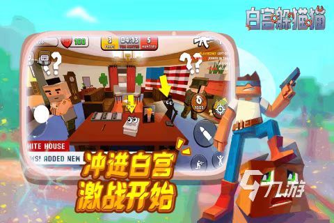 這款游戲和其他的躲貓貓游戲有所不同,因?yàn)檫@是一款以追逃射擊為核心玩法的游戲。在游戲中,狩獵者會拿著武器去尋找偽裝者的身影,而偽裝者則需要變身各種各樣的東西,這樣就不會被狩獵者找到自己的蹤跡。偽裝者可以躲到白宮里面,也可以躲到桌子下面,但是追尋者往往是有特技的,他們可以使用雷達(dá)來尋找偽裝者。