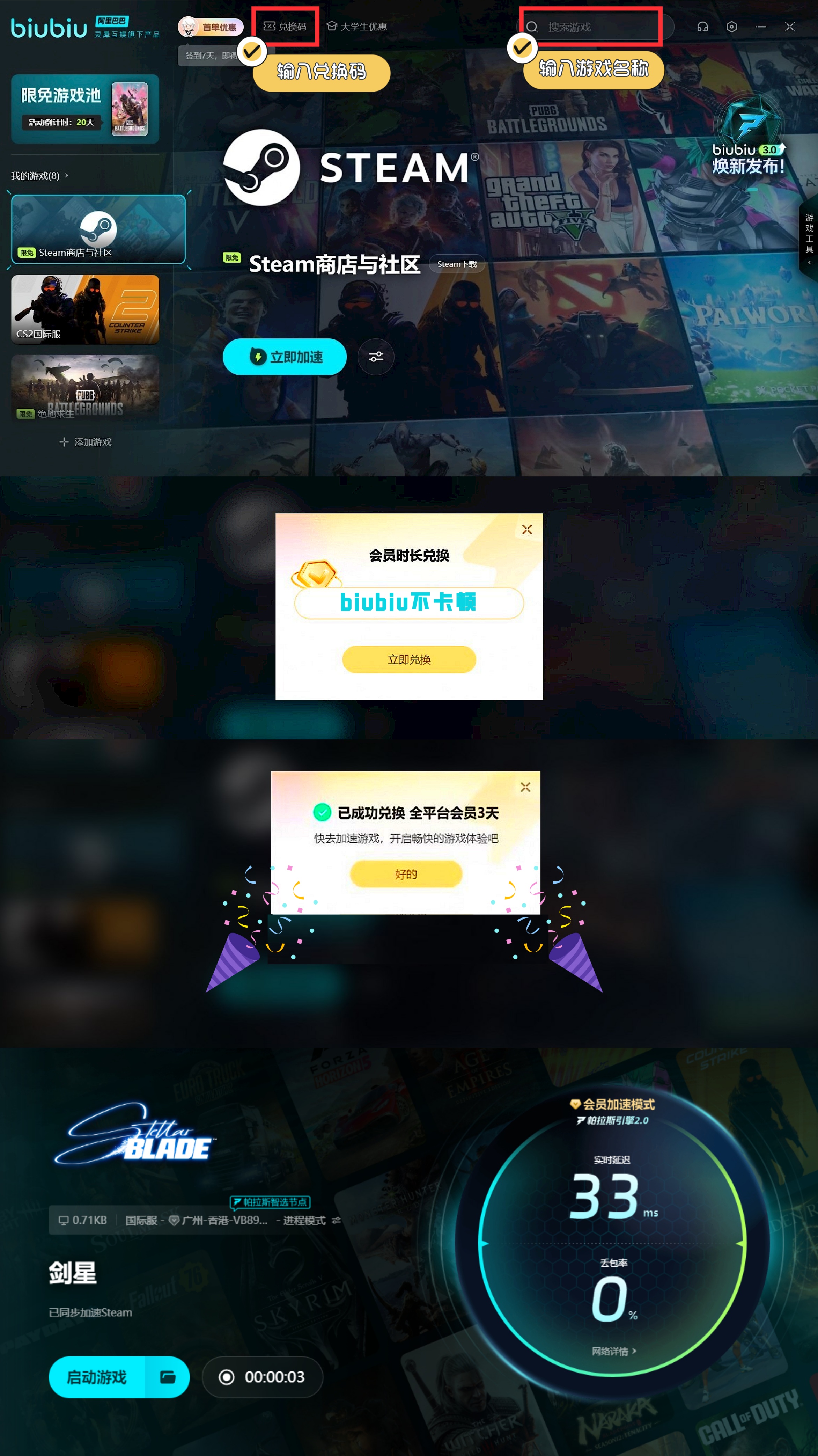 若是想要解鎖更多加速機(jī)會(huì),其實(shí)主動(dòng)來(lái)點(diǎn)擊兌換,然后借助【biubiu不卡頓】,所有平臺(tái)用戶均可順利領(lǐng)取到72h的加速機(jī)會(huì)哦。