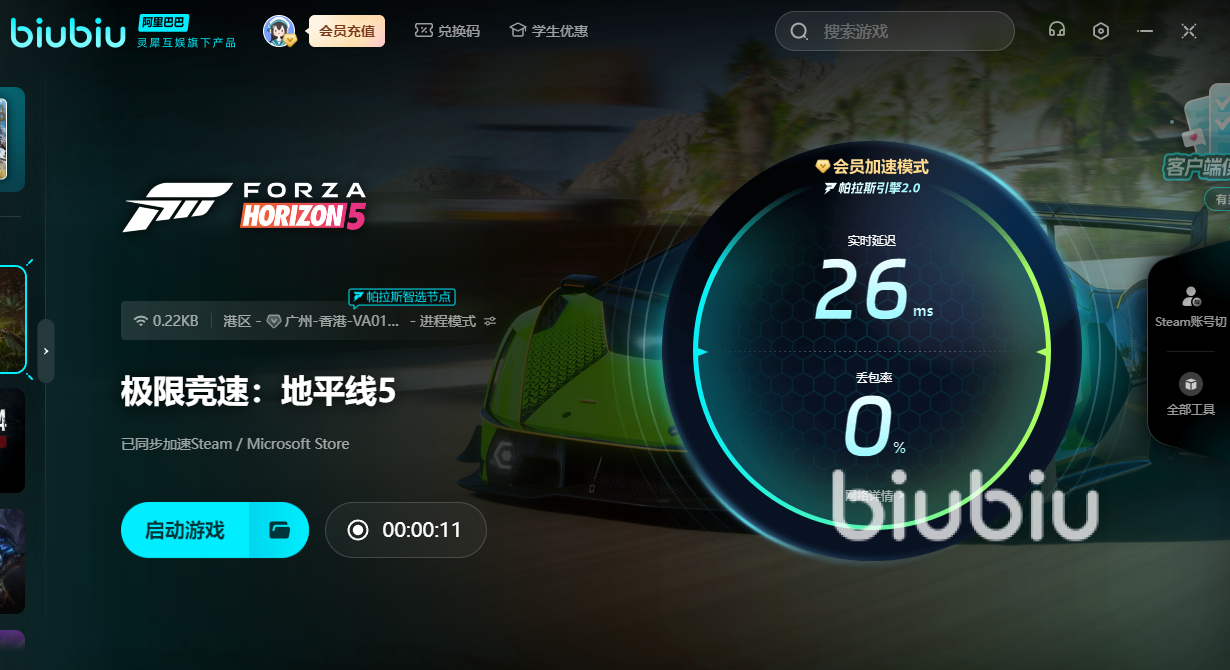 地平線5作為一款全球知名的賽車類續(xù)作,如今暫時還沒有上線國服。為了與各地車手馳騁并較量,各位最好用上biubiu。如此就能搭上新的直升飛機,來到全新地域開始賽車。新用戶的話可獲得3小時的免費加速,接著新老用戶輸入【biubiu不卡頓】,又能額外領取三天免費加速,讓你樂享不停!若是在飆車時太卡的話,很容易撞到周圍的障礙物上面,讓自己落后于人。用上加速器后,才能嚴格控制方向盤,有效躲過周邊的障礙物。
