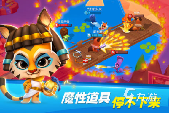 在卡通畫風(fēng)中,玩家擁有多種以動(dòng)物為原型的角色,比如說(shuō)巴克和米洛以及經(jīng)典的小狐貍尼克斯。多種模式供玩家選擇,不僅有雙人以及三人團(tuán)隊(duì)賽,玩家也可以參加一隊(duì)伍進(jìn)行的死亡競(jìng)賽。在道具系統(tǒng)中,小老虎等角色可以使用旋風(fēng)等魔性道具。在特色的地形系統(tǒng)中,玩家可使用道具進(jìn)行地形互動(dòng)從而增加趣味性。