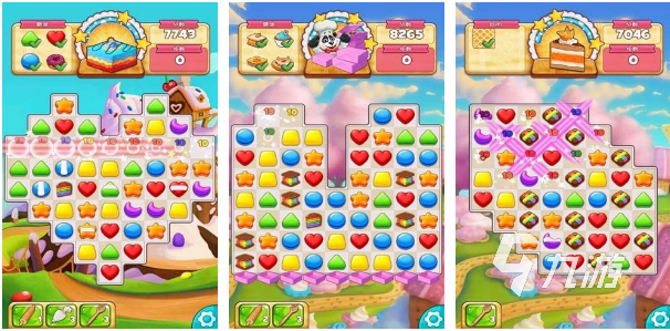 這款游戲中所有的圖案都是蛋糕,玩家需要將所有的蛋糕消除完畢,每一個關卡都有不同的要求和目標,只有將所有的目標達成,并獲取高額的分數才能夠完成通關,游戲場景多樣,每一關都能夠帶給玩家不同的游戲體驗。