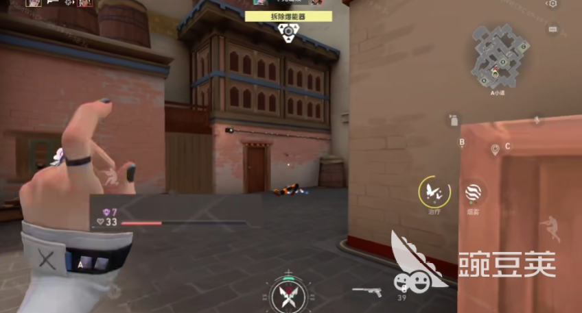 第三個技能“整蠱”則是一種具有彈跳特性的范圍裝置,投出后可在墻面多次反彈,影響區(qū)域內(nèi)所有單位(包含友方)。炸彈持續(xù)存在5秒,在此期間會對范圍內(nèi)目標(biāo)施加90點(diǎn)腐蝕生命值的效果,倒計時結(jié)束后血量自動恢復(fù)。該技能適用于清理藏匿于拐角或狹窄通道的對手,提前布控可為后續(xù)槍線爭奪創(chuàng)造有利條件。