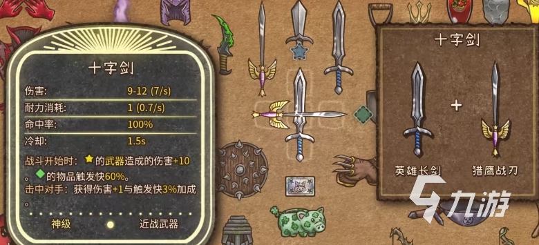 13、十字劍(比較好用的近戰(zhàn)武器道具,還能增加背包物品觸發(fā)速度)