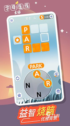 一款特別有趣且益智的游戲,里面包含了好多精彩好玩的關(guān)卡。這游戲的畫面和音樂都進行了全面升級,背景特別好看,音樂也特別悅耳,讓玩家在玩游戲的時候感覺特別放松。它有好多好多的關(guān)卡,每個關(guān)卡都有不同的挑戰(zhàn)和獎勵等著玩家。它既能鍛煉玩家的智力,又能讓玩家在拼寫單詞的過程中學(xué)到知識。單詞和字母特別多,得選對填空才能過關(guān)。