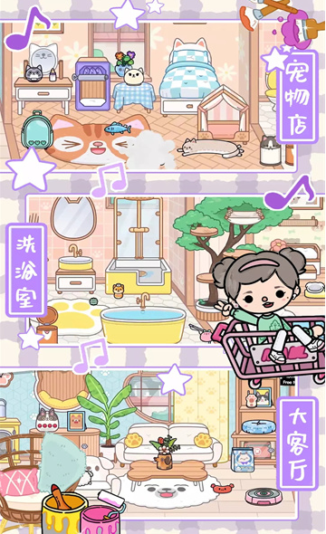 大家在這里有很多身份,可以當(dāng)甜品店的老板,也可以變出水族館設(shè)計師的身份。走在路上碰到流浪貓,還有可能開啟一段溫馨的領(lǐng)養(yǎng)故事,小鎮(zhèn)的每一個地方都有驚喜,拿到稀有的圖紙之后,就可以去打造屬于自己的夢幻小屋了。在這里,美樂蒂可能會請大家喝下午茶,大家烘焙的手藝好不好,會直接影響到茶話會的整個氛圍,不管大家是想體驗不同的職業(yè),還是想放松一下,都可以來這里試一試。