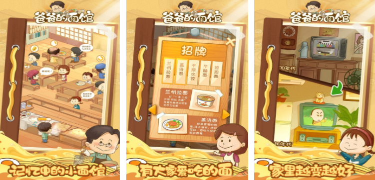 這是一個(gè)卡通風(fēng)格的模擬游戲,在游戲中布置可以模擬人物小時(shí)候的家,同時(shí)也可以模擬記憶中爸爸的面館,游戲中物品的擺放和風(fēng)格都是非常復(fù)古的設(shè)計(jì),玩家在游戲中可以親自幫助爸爸經(jīng)營(yíng)面館,感受一家三口的溫馨生活。