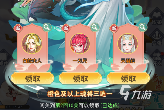 這時候一般也能激活“千抽搖人”活動了,會有多次10連的機(jī)會,每個10連都會出1個橙將,然后再三選一,這里可以先抽著但不用急著領(lǐng)取,可以先看隊伍里有哪些類型和陣營的武將,如果有輸出就補(bǔ)輔助,有2個天系可以再領(lǐng)個天系湊陣營加成。