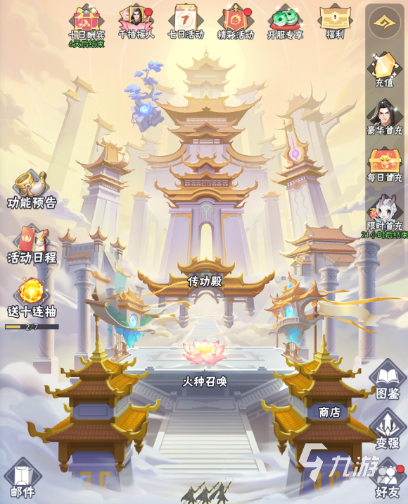攢了一定資源和系統(tǒng)活動贈送的獎勵后,像是在線獎勵、充值禮包(也有0元充值的禮包)、七日活動、開服專享、福利獎勵、送十連抽等活動,這些也是足夠大家抽好幾個10連了,怎么也能拿到3-4個橙色魂將了。