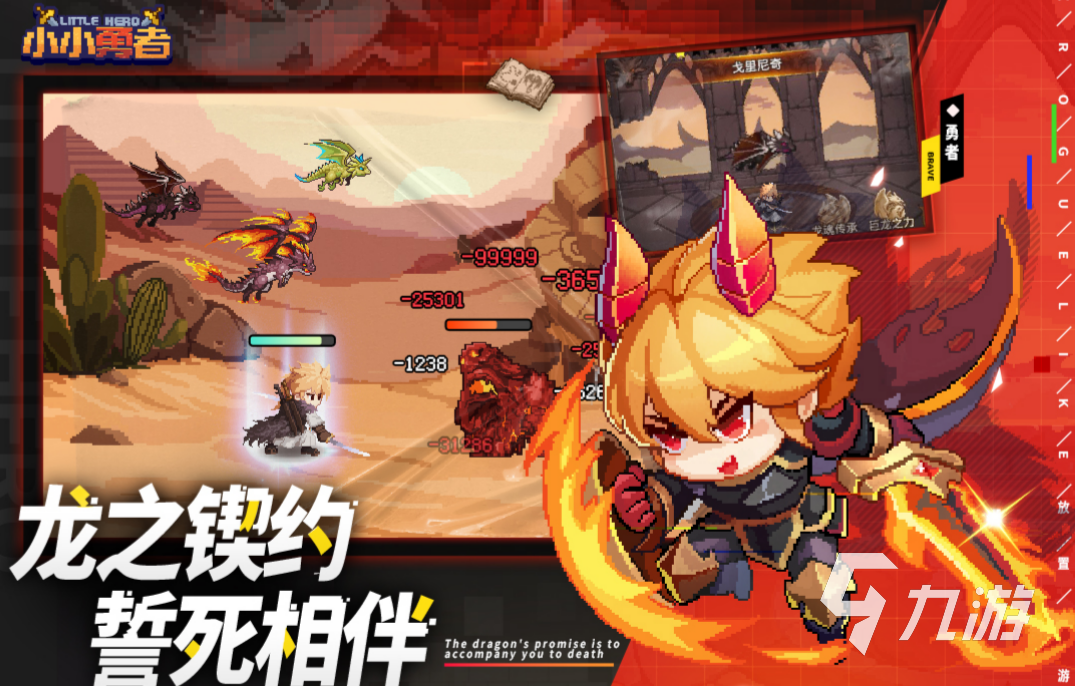 《小小勇者》是個(gè)像素畫風(fēng)的放置格斗類游戲,玩家們可以組建一個(gè)像素小人組成的團(tuán)隊(duì),然后將每一個(gè)小人兒都進(jìn)行強(qiáng)化,再跟這些角色們一起在游戲里戰(zhàn)斗,玩家們要跟著劇情一點(diǎn)點(diǎn)擊敗敵人的隊(duì)伍,然后回到自己的家園里,想要提升自身的戰(zhàn)斗力,就要在游戲里玩各種副本,獲得很多進(jìn)階的材料。