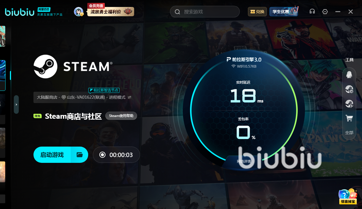 網(wǎng)絡(luò)游戲大部分都是需要聯(lián)網(wǎng)才能運(yùn)行,不論是熱門(mén)的MOBA游戲還是FPS游戲,核心樂(lè)趣都集中在玩家之間的水平對(duì)抗上,一旦網(wǎng)絡(luò)不好,不僅自己發(fā)揮受限,還很容易拖累隊(duì)友的戰(zhàn)績(jī),甚至成為這局比賽失敗的主要因素,同時(shí)自身的游玩體驗(yàn)也會(huì)大幅下降。為了提升網(wǎng)絡(luò)體驗(yàn),避免這類(lèi)問(wèn)題,玩家可以使用biubiu進(jìn)行全面加速,它能針對(duì)性?xún)?yōu)化網(wǎng)絡(luò)鏈路。并且新人在注冊(cè)后便能獲得24小時(shí)免費(fèi)加速時(shí)長(zhǎng),新老用戶(hù)使用兌換碼【biubiu不卡頓】還可額外獲得3天免費(fèi)的使用權(quán)。