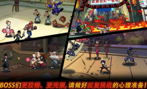 暴力街區(qū)2是橫版動(dòng)作手游,畫風(fēng)是美式漫畫風(fēng)格,場(chǎng)景也充滿了街頭的氛圍,游戲的核心玩法是角色切換和技能組合,玩家可以同時(shí)操控三個(gè)角色,每個(gè)角色都有兩種武器,切換武器就能改變攻擊模式,比如有的角色用手槍的時(shí)候是遠(yuǎn)程攻擊,換成刀就變成了近身格斗,不同的武器還有專屬的必殺技,搭配起來(lái)能打出很多花樣。