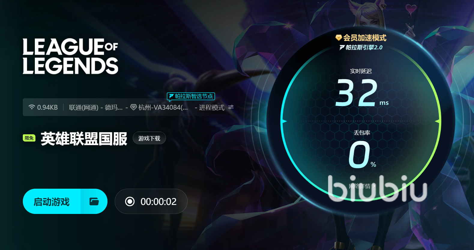 有時候網(wǎng)絡(luò)方面也會導(dǎo)致閃退,比如說網(wǎng)絡(luò)實在太差了,這時候就會出現(xiàn)閃退,需要重新載入,這對于lol是很致命的,因為每分鐘都會出現(xiàn)不同的轉(zhuǎn)折點,而且還會拖慢跟對面的經(jīng)濟(jì)發(fā)育速度,所以為了避免這種情況,就可以使用biubiu加速器進(jìn)行一鍵加速,并且新人在注冊后便獲3小時免費(fèi)加速,新老用戶均可使用兌換碼【biubiu不卡頓】可獲3天免費(fèi)的使用權(quán)哦!
