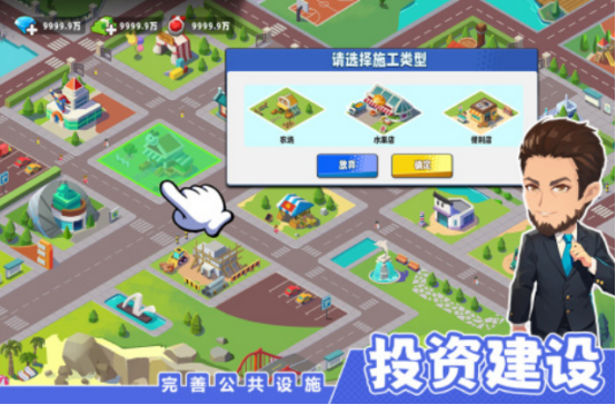圍繞商業(yè)建設(shè)題材創(chuàng)作,大家剛開始一窮二白,但為了實(shí)現(xiàn)自己的建設(shè)愿望,因此不斷努力,在較大的城市中,建設(shè)水果店或者電影院等等,通過隨意建設(shè)各種建筑物的方式賺到更多金錢。游戲并沒有嚴(yán)格的要求,所有的投資建設(shè)或者種菜養(yǎng)殖,都是由自己來操控,發(fā)揮自己的想象力,打造個性化小鎮(zhèn)。
