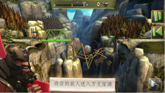 以奇幻中世界為背景,大家可親自經(jīng)歷不同的時代,比如從騎士時代再到城堡時代等等,在每座城市發(fā)展的過程中,橋梁都非常重要,而在此游戲中卻講述的就是有大量敵人的入侵,因此在敵人行走的道路上,必須要設(shè)計橋梁陷阱,不要讓敵人順利到達(dá)終點(diǎn),以設(shè)立40多個挑戰(zhàn)的關(guān)卡內(nèi)容,可設(shè)計封閉式的橋梁或者是堅固的支柱保護(hù)自己的城市。