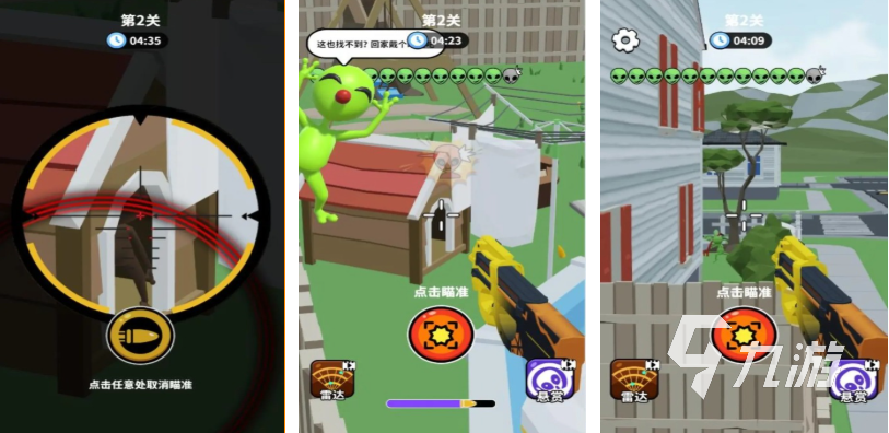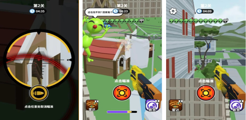 這是款能單機運行的外星人模擬射擊類游戲,超簡單的點觸移動準心射擊機制玩起來更加有趣,新奇的互動性質(zhì)加上完善的操作代入感全面,找到外星人并進行戰(zhàn)斗打擊的游戲機制也蠻有趣,毫無難度的流暢操作更符合小朋友玩家的需求,機動性更強的射擊闖關(guān)玩法也是許多外星人愛好者的最愛。