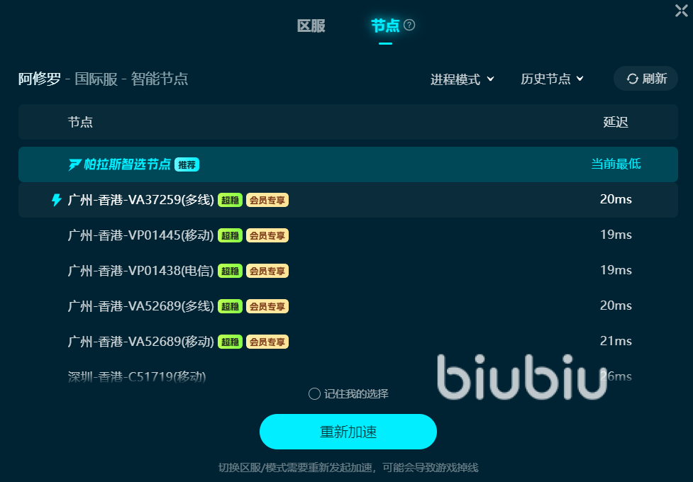然而,不少玩家在游玩過程中會遇到一個棘手的問題:游戲卡頓。由于其服務(wù)器位于海外,國內(nèi)玩家直連時容易受到網(wǎng)絡(luò)波動影響,導(dǎo)致游戲體驗大打折扣。解決阿修羅卡頓問題,強烈推薦有電競專享的biubiu加速器。它能有效解決因服務(wù)器距離帶來的網(wǎng)絡(luò)難題,即使玩家與服務(wù)器相隔甚遠,也能在其輔助下實現(xiàn)連接又穩(wěn)又快。