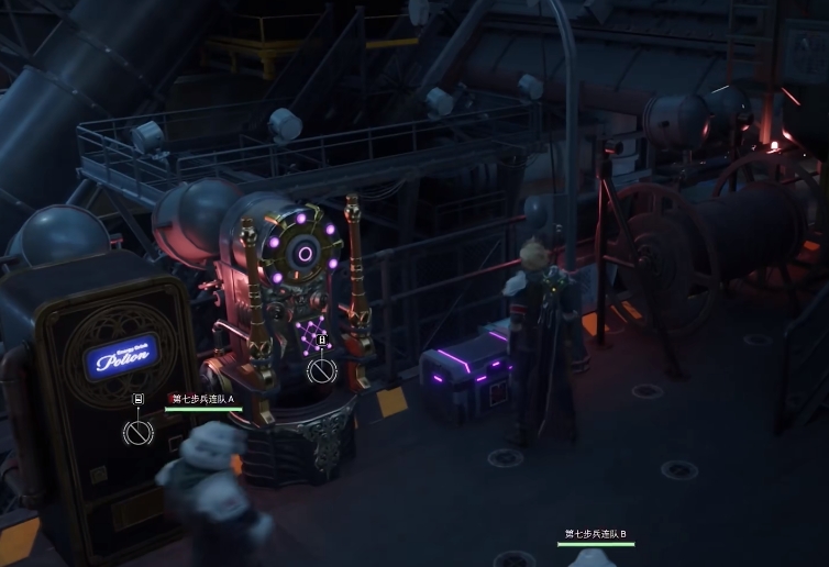 等到游行活動(dòng)結(jié)束,玩家就可重新控制克勞德角色,此時(shí)也會(huì)發(fā)現(xiàn)武器就位于前方,它靠近自動(dòng)售貨機(jī)和一張長(zhǎng)凳位置。