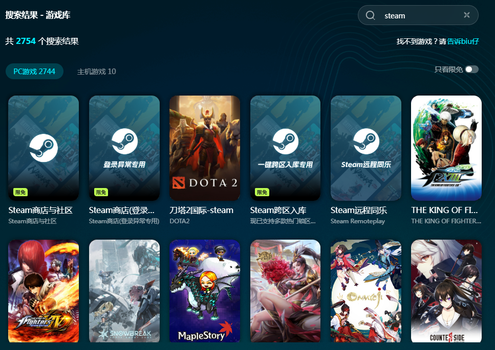 想要下載加速器,就點擊上方按鈕,它將跳出biubiu的下載鏈接,注冊新用戶以后就能獲得3H免費加速。biubiu加速范圍很廣泛,光是steam平臺就支持加速跨區(qū)入庫、商店和社區(qū)、遠(yuǎn)程同樂,還能直接加速在steam游戲上面,只要是平臺里可以搜到的資源,都能使用免費時長來體驗加速效果。