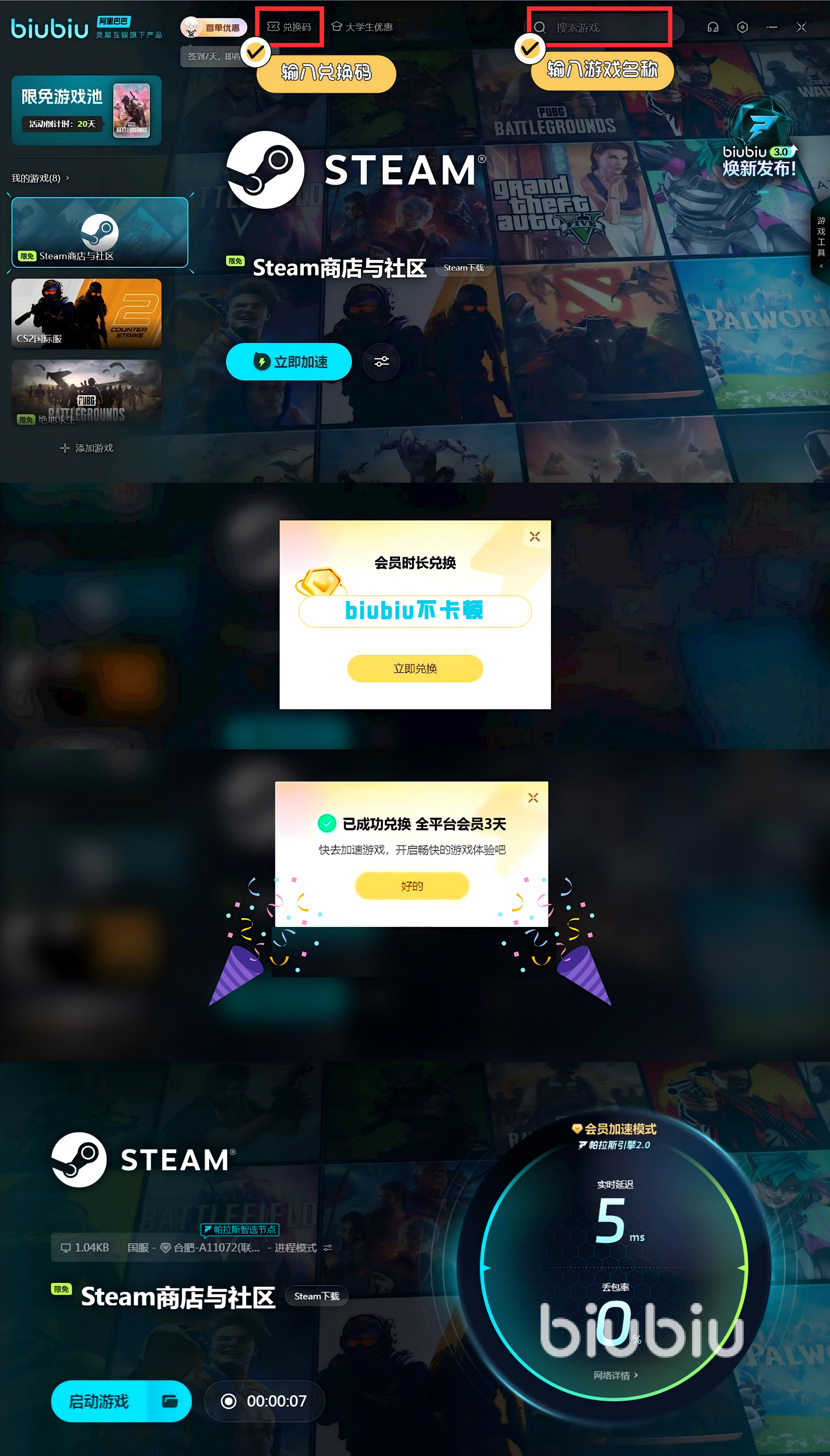 剛好現(xiàn)在是有活動的,各位快來試試看吧,biubiu給我們超多的福利的,注冊賬號去吧,新人直接能夠享受到3小時的免費提速時間的,然后還有個超級大福利等待著新老使用者呢,各位只要拿到【biubiu不卡頓】,就可以換到72小時提速時間的,趕緊行動起來,那新用戶就可以暢享到75小時提速時間了。