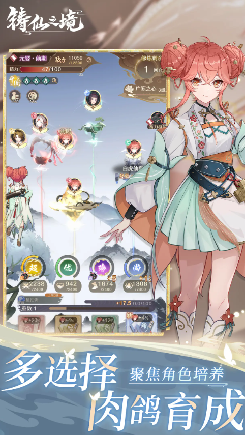 游戲可以通過抽卡的方式來招募弟子,每一個弟子都會有自己的特色,玩家可以通過培養(yǎng)中的隨機事件和詞條來進行培養(yǎng),每一位弟子還都可以反復培養(yǎng),選擇完全不同的方向,讓玩家的整體實力更加強勁。