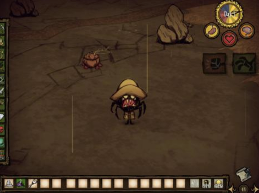 它是屬于pc端移植到安卓平臺(tái)單機(jī)的狀態(tài)下,就可展開一段以野外求生為主的探險(xiǎn)之旅,玩家是游戲當(dāng)中的主角,名字叫做威爾遜,除了感受到主角的外形設(shè)計(jì),非常的獨(dú)特,讓人眼前一亮,也是根據(jù)pc游戲在玩法上保持一致的。進(jìn)入了魔法甚至是科學(xué)的世界當(dāng)中以后,由于主角是一名紳士科學(xué)家,所以也將面臨各種危險(xiǎn)的時(shí)候,憑借著具備的科學(xué)知識(shí)來(lái)解決。