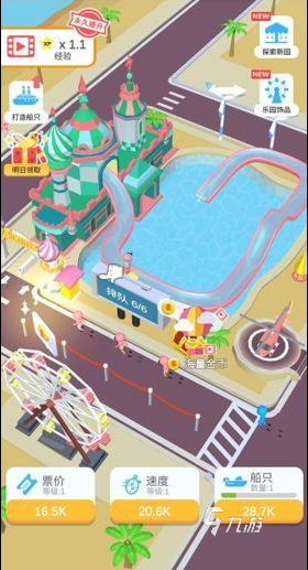 這是一款休閑經(jīng)營(yíng)類(lèi)游戲,玩家可以通過(guò)劃船、升級(jí)、建造摩天輪等方式來(lái)獲得金錢(qián);玩家可以在游戲中任意升級(jí)設(shè)備等級(jí),從而賺取更多的金錢(qián),另外,還可以建造一艘船,供玩家使用。游戲里有8個(gè)主題城堡,每個(gè)城堡都可以升級(jí),你可以選擇更好的游艇和城堡!各種不同的游戲玩法和驚奇之處等待著您。