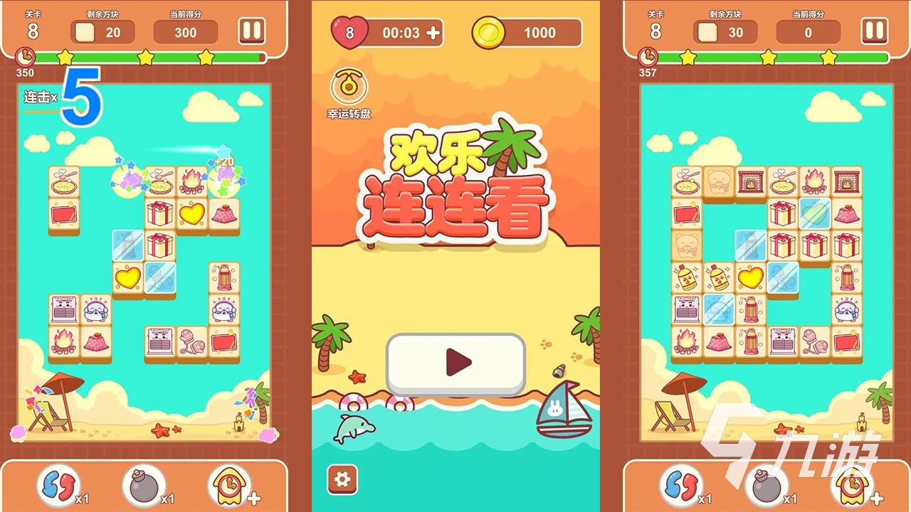 《歡樂連連看》是一款比較硬核的九宮格連線手游,在經(jīng)典的九宮格陣型中,不僅有可以被消除的圖案,還有不能被消除的障礙,有些奇怪的圖案中,還會藏著各式各樣的陷阱,觸發(fā)陷阱就會干擾玩家的游戲進度,打亂玩家已經(jīng)熟悉的陣型,所以玩家一定要把握連線消除的節(jié)奏,最好將奇怪的圖案放到最后來消除。如果進入了死局,玩家可以召喚輔助道具,將死局打破,為玩家找到新的方向。