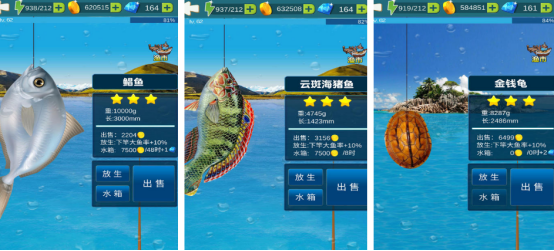 包含上百種具有特色的魚類,有70多種關(guān)卡,非常神秘的全新魚品種等你解鎖不僅可出售,還可直接放到水族館當(dāng)中飼養(yǎng),讓你的水族箱變得靚麗多彩。新增特色玩法包括秘境挑戰(zhàn)以及料理合成,全新升級(jí)的版本,具有釣魚比賽等你挑戰(zhàn),有機(jī)會(huì)成為真正的釣魚大師。