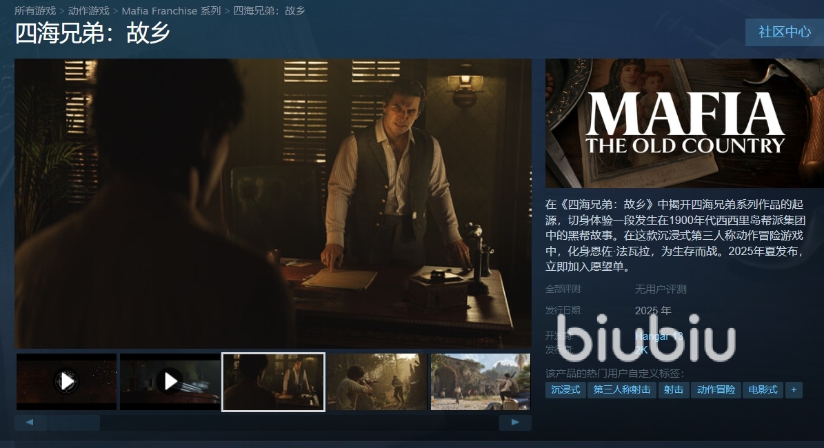 在Steam商店中,可以直接用《四海兄弟: 故鄉(xiāng)》這個(gè)名字直接搜到游戲,也可以用它的英文名稱(chēng):Mafia: The Old Country,游戲設(shè)定在虛構(gòu)的西西里小鎮(zhèn),摒棄了開(kāi)放世界的玩法,轉(zhuǎn)而采用線(xiàn)性敘事,強(qiáng)調(diào)劇情的緊湊與集中。