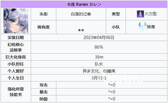 卡蓮:屬于輸出性的角色面板技能比較高,例如六級(jí)技能就可以直接跳過(guò)蓄能啟用??梢葬槍?duì)敵方防御單位產(chǎn)生一個(gè)比較可觀的傷害。