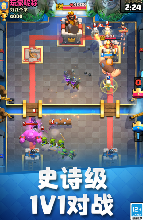 一款能實(shí)時(shí)跟人打的卡牌手游,上手很簡(jiǎn)單,游戲里有一百多張卡牌,按稀有度分了五個(gè)等級(jí),最常見(jiàn)的到最稀有的英雄級(jí)都包含在內(nèi)。這些卡牌主要分三種類型,每種在對(duì)戰(zhàn)里能起到的作用不一樣,大家可以從里面選自己喜歡用的,搭配出一套牌,然后用這套牌去跟其他玩家較量。每次對(duì)戰(zhàn)都是固定的3分鐘,整個(gè)過(guò)程的核心目標(biāo)很清晰,就是把對(duì)方那座皇家塔摧毀掉。