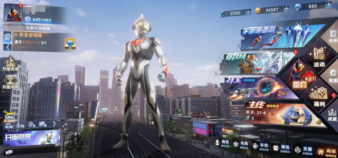 玩法方面是策略與動作相結(jié)合的戰(zhàn)斗體系,玩家不僅可以集結(jié)歷代奧特戰(zhàn)士,像是迪迦、蓋亞、阿古茹、賽羅等等,還能召喚芝頓、巴爾坦星人、艾雷王等怪獸同臺作戰(zhàn),光與暗勢力同臺。力量、速度、技巧三大屬性相互克制,羈絆組合技與空中沖擊機(jī)制相互配合。