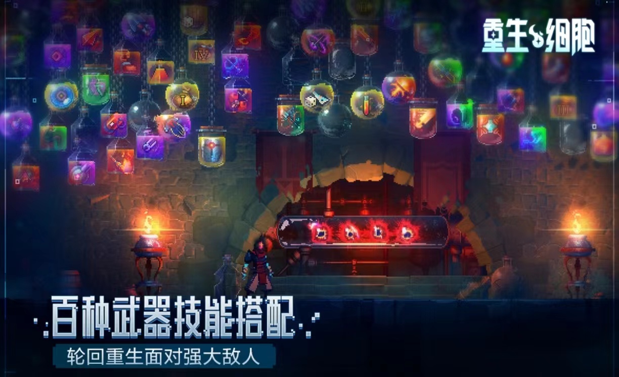 《重生細(xì)胞》玩家可以經(jīng)歷兩種武器的選擇,在每一次作戰(zhàn)之前可以選擇兩個不同的道具,在裝備系統(tǒng)里面能選擇的樣式比較豐富。玩家在游戲中會在一個大的地牢里,在地牢中會出現(xiàn)很多的牢房,每一個牢房中都擁有著不一樣的挑戰(zhàn),玩家也可以通過傳送點快速的進(jìn)入不同的牢房,在不同的牢房里會出現(xiàn)一些寶箱,有可能開到一些保護(hù),也有可能是詛咒箱子,這個就需要靠玩家自己的運氣了。在作戰(zhàn)的時候每一位角色的動作也很流暢,各種場所之間的切換也比較快速。