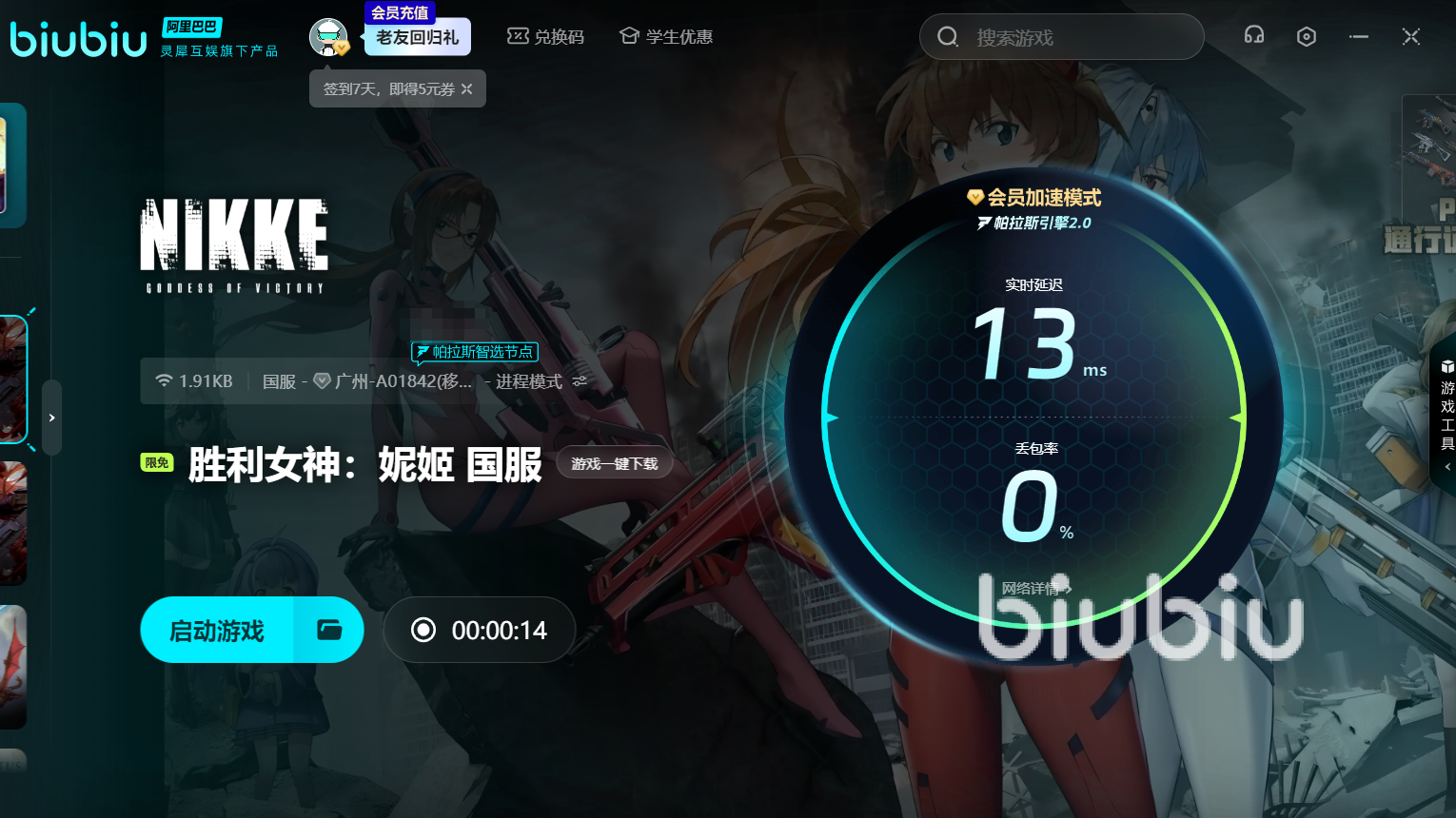 妮姬勝利女神中的每場戰(zhàn)斗都有可能讓玩家敗北,太卡的話,便會讓自己的勝率降低。用上了biubiu之后,自然可解決卡頓,每次都能讓你保持全盛狀態(tài),參加戰(zhàn)斗。對于剛注冊的新人來說,就可以獲得24小時的免費(fèi)加速。另外新老用戶輸入兌換碼【biubiu不卡頓】,就能額外獲得三天免費(fèi)加速。要是在做一些主線任務(wù)時突然閃退,那之前看了的劇情下次重啟后就要再看一遍。用了加速器后,就可以避免浪費(fèi)時間,方便參加新的任務(wù)。