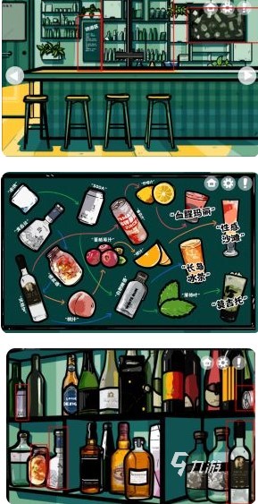點擊調(diào)酒區(qū)可以進入調(diào)酒臺,在調(diào)酒臺上可以看到要調(diào)酒的提示。那么,要調(diào)制什么樣的葡萄酒?還記得那首歌在錄音帶里的歌么?是??!莫吉托。將【冰】、【蘇打】、【白朗姆酒】、【薄荷葉】分別放入調(diào)酒杯中,【磁帶2】就會被激活。