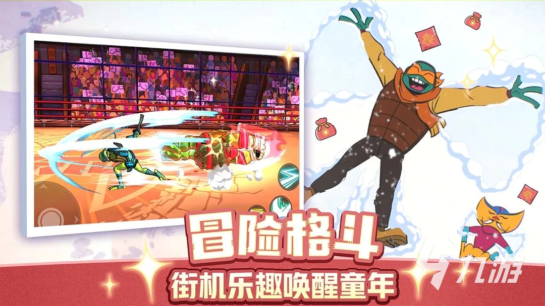 忍者龜動畫是很多人的童年回憶,最近以18版忍者龜為背景的改編手游上線,那么接下來小編給各位玩家?guī)砣陶啐敋w來下載安裝地址分享,最新忍者龜歸來下載鏈接。這是一個輕松益智的橫版格斗手游,點擊下方鏈接到九游下載游玩正版無廣告的游戲,感興趣的朋友快一起下載來玩一下吧!