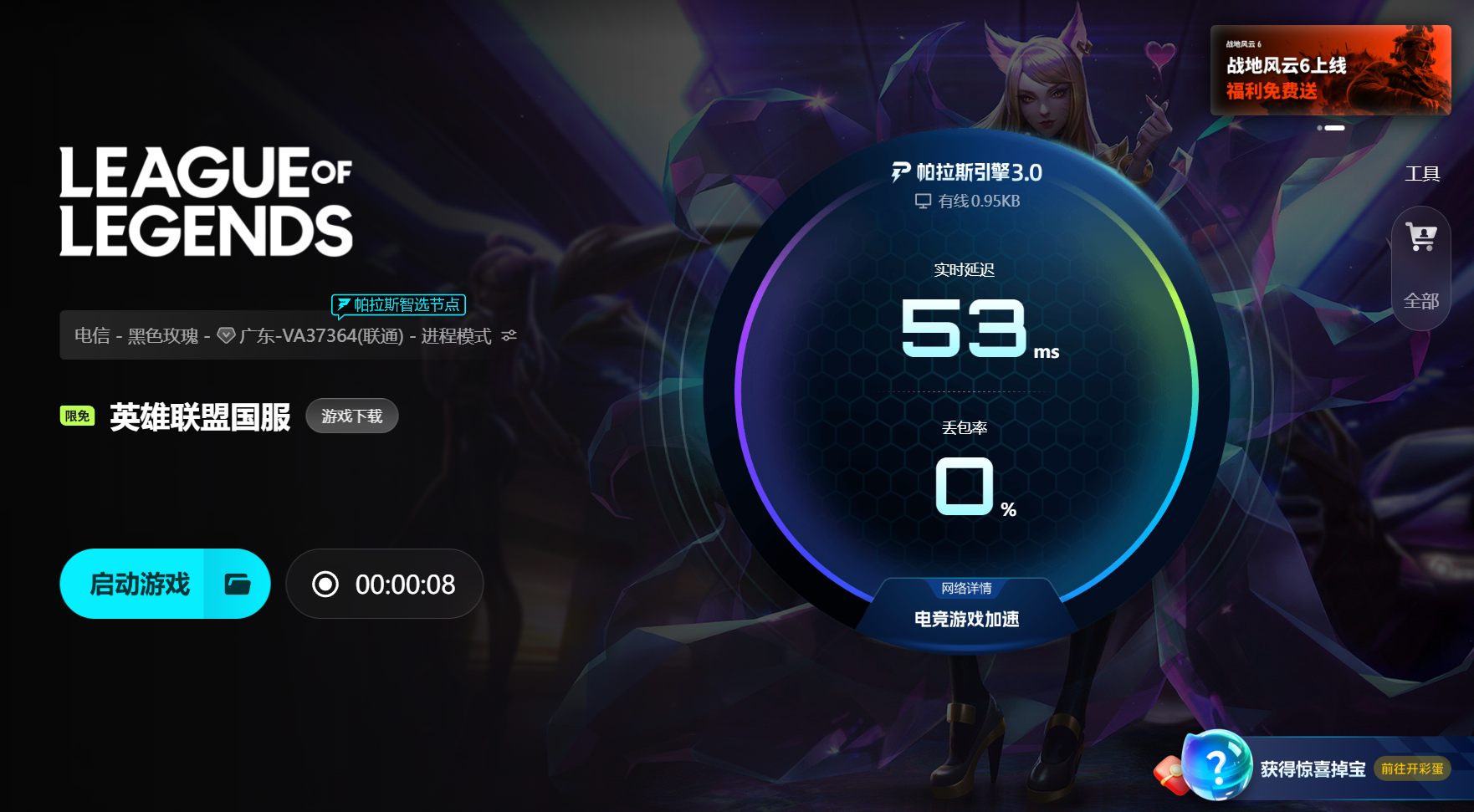開啟加速后差異立刻顯現(xiàn)。過去反復(fù)卡在leagueoflegends界面的情況徹底消失,登錄界面流暢出現(xiàn),匹配按鈕響應(yīng)迅速。延遲從三位數(shù)降至穩(wěn)定區(qū)間,語音溝通清晰,好友狀態(tài)實(shí)時(shí)更新。進(jìn)入大廳后界面不卡頓,玩家身份信息秒加載,英雄皮膚展示流暢無延遲。連貫的節(jié)奏讓人重新找回游戲的快感,整個(gè)過程從啟動(dòng)到開場(chǎng)都保持順滑。