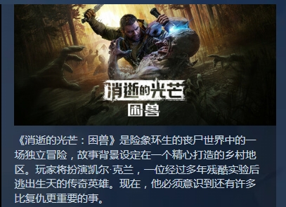 原作本身就是很經(jīng)典的生存恐怖游戲,制作組推出2部之后,是準備上線dlc的,但是隨著制作進度的推進,發(fā)現(xiàn)其內(nèi)容以及體量,都可以當做是小型獨立游戲了,所以準備單獨出售了。消逝的光芒困獸配置要求是什么大家也很想知道的,配置如果沒有什么太大的提高,大家還是可以正常玩的。