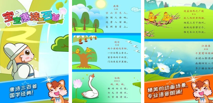 唐詩三百首是每個孩子必須學(xué)習(xí)的古代知識,這款作品就可以讓孩子們在休閑的氛圍中學(xué)習(xí)到更多詩詞,從古至今上百首唐詩宋詞都會在這款作品中出現(xiàn),通過互動式的玩法能讓低齡寶寶快速記住各種詩詞,圖文并茂的游戲內(nèi)容對小朋友來說也是通俗易懂,你也下載這款唐詩主題的休閑益智類游戲幫助孩子學(xué)習(xí)知識吧。