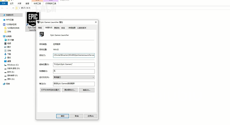 首要問題是,E寶是默認(rèn)安裝在win32系統(tǒng)上的,但要知道,如今市面上的大部分電腦都已升級為win64系統(tǒng)。因此,要解決啟動緩慢的問題,第一步就是找到Epic啟動器的快捷圖標(biāo),右鍵點擊選擇“屬性”。接著,在“快捷方式”選項卡下的“目標(biāo)”一欄中,找到“win32”字樣,并將其手動修改為“win64”。點擊“應(yīng)用”和“確定”,現(xiàn)在再試一下,你會發(fā)現(xiàn)Epic的啟動速度甚至能與蒸汽平臺一較高下了。