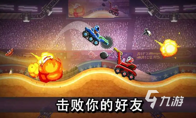 這款碰碰車小游戲,既可以同一個(gè)手機(jī)體驗(yàn),也能夠藍(lán)牙模式聯(lián)機(jī)對抗。兩個(gè)像素畫風(fēng)的可愛小車,在雙人的控制之下向前猛沖,在技巧和力量的操縱中不斷的碰撞,車身采用物理引擎打造,使得翻車效果和車身破壞碎片十分逼真。使用闖關(guān)獲得的點(diǎn)數(shù),能夠解鎖更多道具車輛和特色賽場。