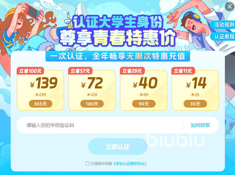 說到學(xué)生用戶,還有一項(xiàng)福利必須推薦給大家,那就是學(xué)生專享優(yōu)惠活動。通過biubiu界面中就能夠直接進(jìn)入此活動,要輸入自己的學(xué)信網(wǎng)驗(yàn)證碼去認(rèn)證身份,然后就可以享受到優(yōu)惠價(jià)格了。優(yōu)惠之后最低能達(dá)到0.3元每天,這樣的價(jià)格絕對是極其劃算,所以能夠大幅度降低學(xué)生黨壓力。對于其他用戶來說,即使是常規(guī)方式去按月續(xù)費(fèi),每月也僅僅需要23元就能夠買到會員,如果一次性購買全年,價(jià)格還能更優(yōu)惠。對大多數(shù)用戶都不會構(gòu)成壓力,這一點(diǎn),也是biubiu能夠長期使用的重要原因。