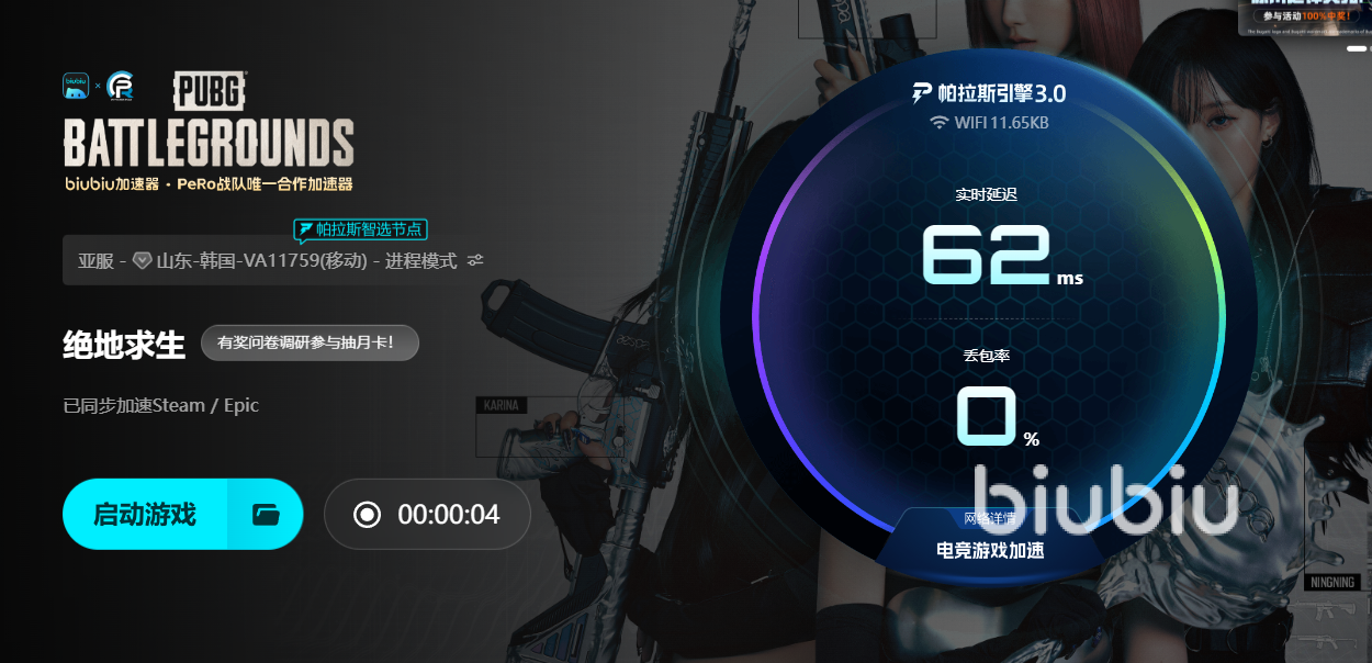 很多玩家覺得黑屏是電腦配置跟不上,其實再目前普遍設備提升的情況下網(wǎng)絡才是最主要的因素?!禤UBG》在多人混戰(zhàn)、快速轉移或加載遠處場景時,需要高頻同步玩家位置、彈道軌跡、載具狀態(tài)等數(shù)據(jù),尤其是在決賽圈多隊交火時,數(shù)據(jù)傳輸?shù)奈⑿⊙舆t都可能引發(fā)畫面中斷。可以嘗試一下biubiu加速器,新用戶注冊能獲得24小時免費時長;而且不論是新玩家還是老用戶都可以輸入口令【biubiu不卡頓】再兌換72小時。