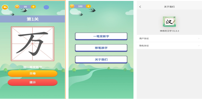 漢字小狀元是一款在標準的田字格當中進行的漢字學(xué)習(xí)認知小游戲,游戲模式主要是添一筆變成全新的漢字的游戲模式,孩子們在游戲的同時增加自己的漢字儲備,同時了解到規(guī)則的漢字寫法。