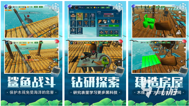 木筏求生是款玩法獨(dú)特的海上生存類(lèi)型手游,3D的場(chǎng)景建模和浩瀚的海洋地圖讓人沉浸其中,打撈物資進(jìn)行建造的玩法十分另類(lèi),你不僅需要再木筏上搭建住所和工作臺(tái),還需要制作武器與邪惡的大鯊魚(yú)進(jìn)行戰(zhàn)斗,惡劣的天氣和稀有的物資讓這款游戲更具挑戰(zhàn)性,你能在一望無(wú)際的大海中存活多長(zhǎng)時(shí)間呢?