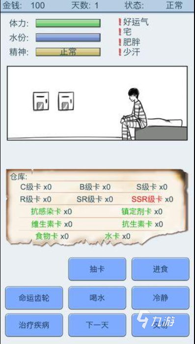 如果人生從降生到死亡,都要通過抽卡來決定會怎么樣呢?在這個游戲中,唯一的玩法就是抽卡,玩家可以靠抽卡來獲得水、食物、物品、藥品等等。而抽卡的好壞則由你出生的天賦來決定,判斷你的運氣好壞的時候到了。