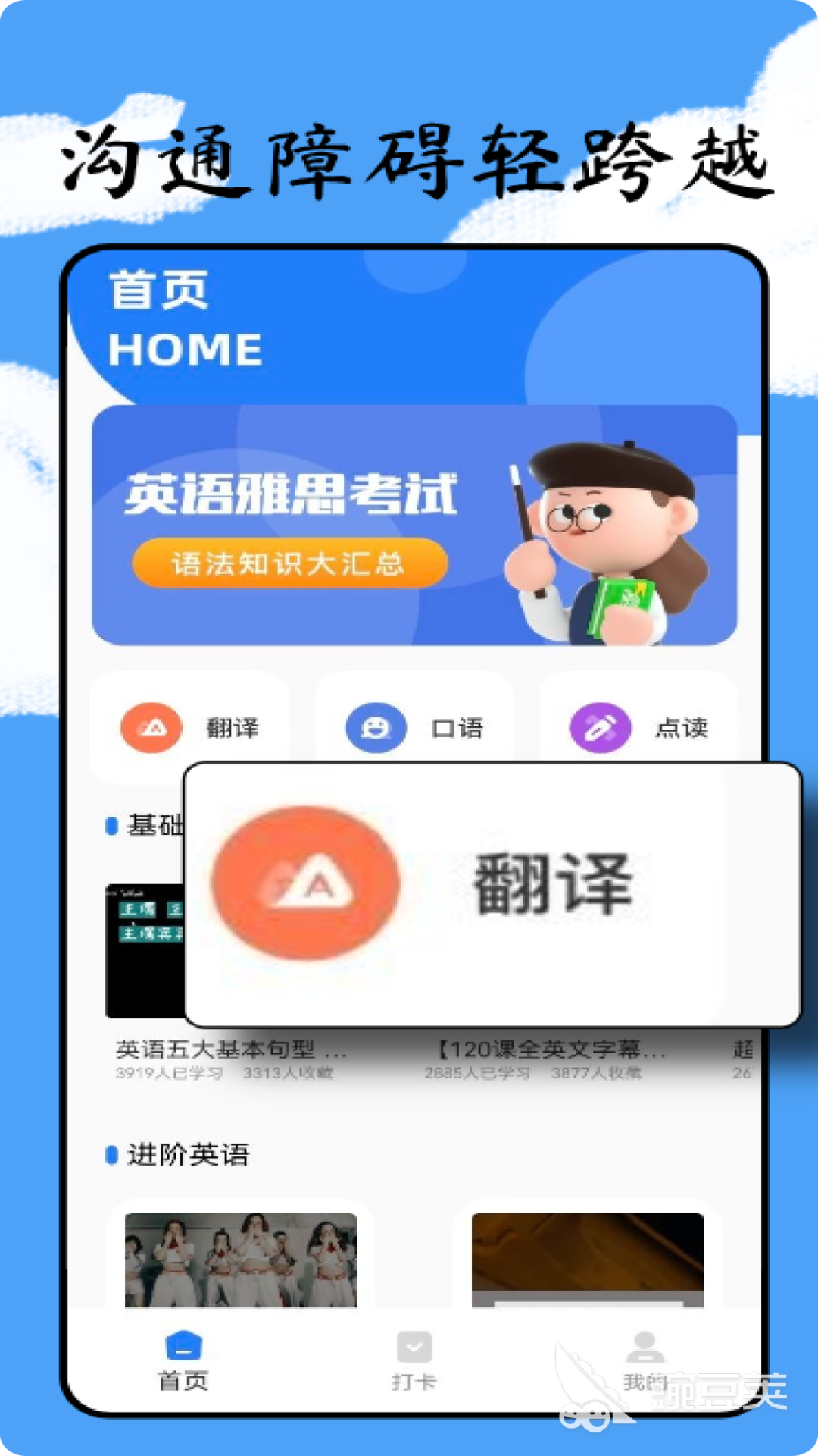 這款專注于不同的英語學習,支持12種主流教材版本的課文解析,單詞發(fā)音準確度也特別的高。采用了先進的智能算法,能夠?qū)崟r的去分析發(fā)音和語調(diào)等多個維度的參數(shù),實現(xiàn)智能的糾錯,還提供了口型示范和發(fā)音技巧的指導。對于不同的日常對話和商務談判等各種真實的場景,都可以隨時的去開啟1v一的練習,不需要進行預約等待。而且可以通過簡短的測試即可評估自己的等級,并定制學習方案就可以避免盲目的進行學習,適配各類成人進階的需求。